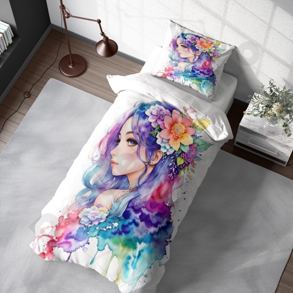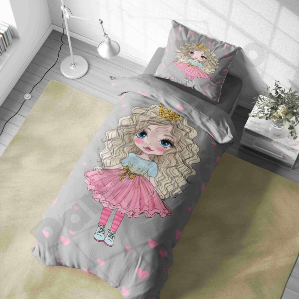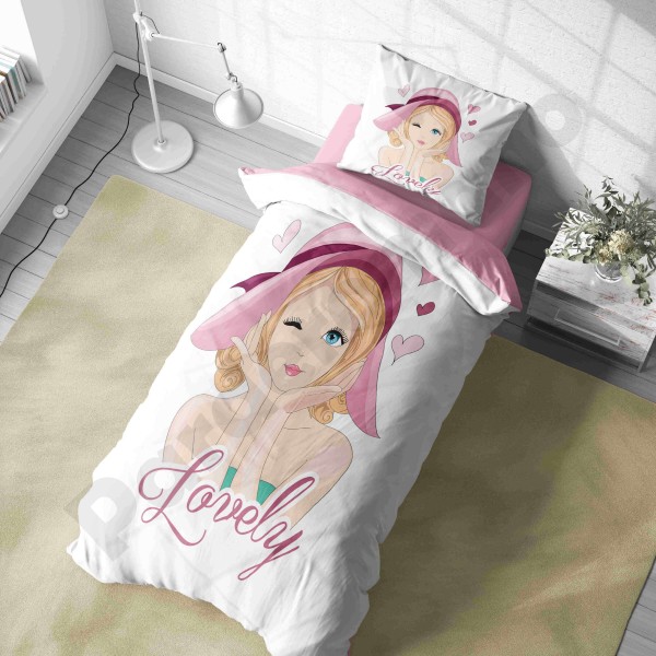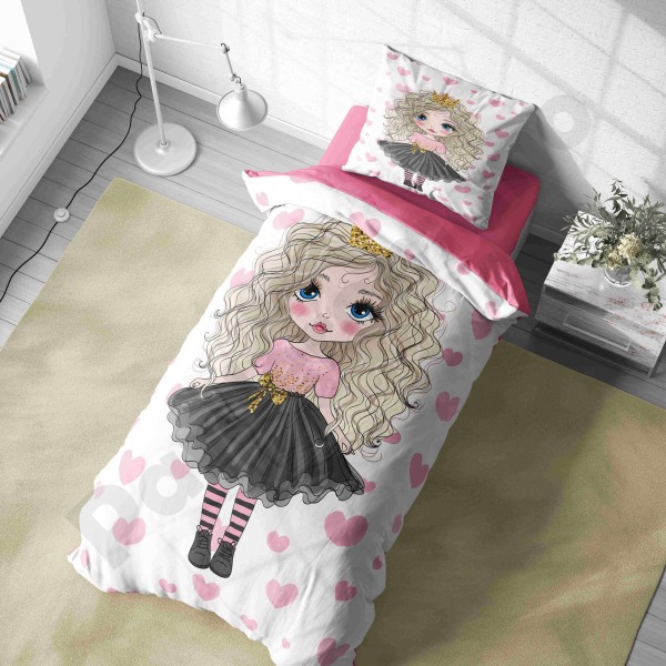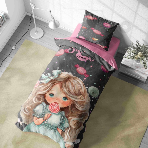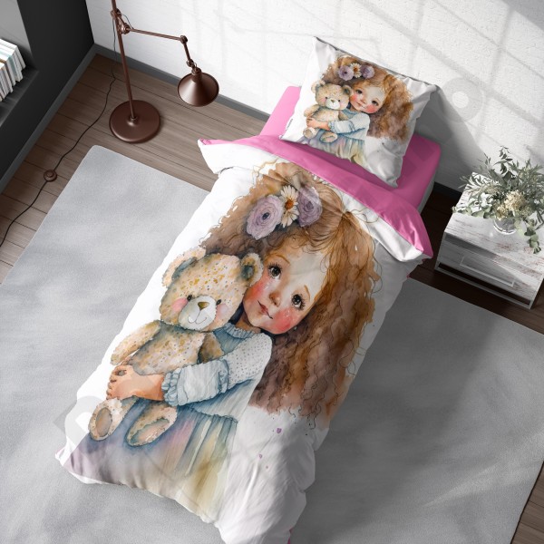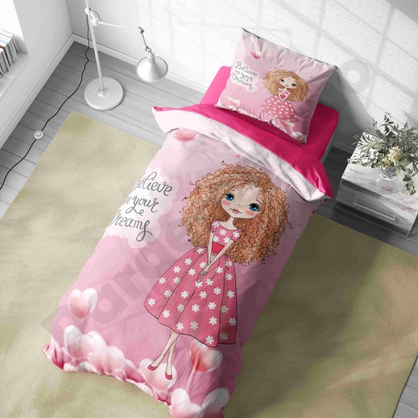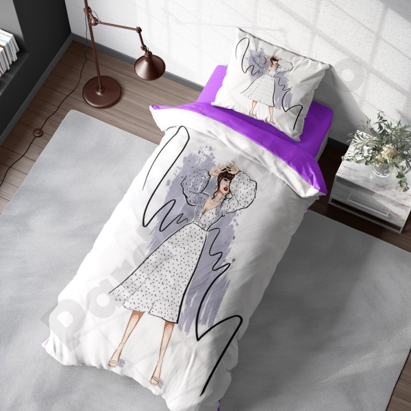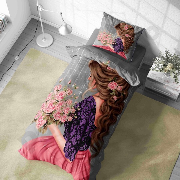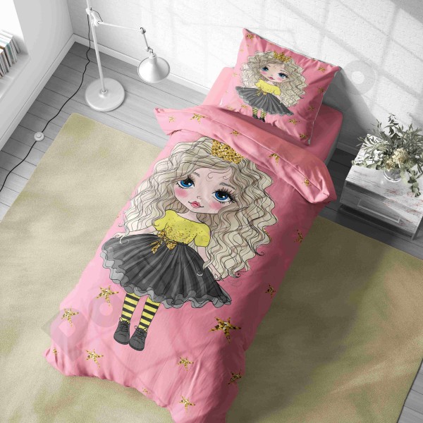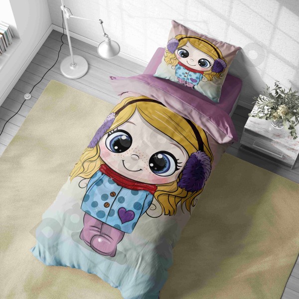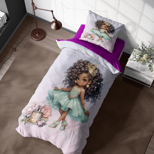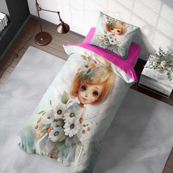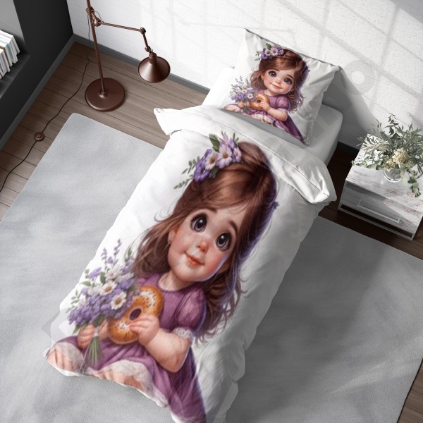 ست روتختی یکنفره طرح دختر مو فرفری
