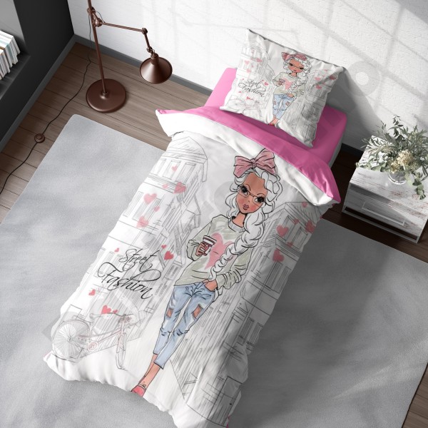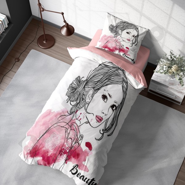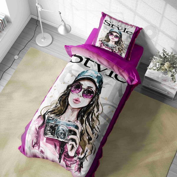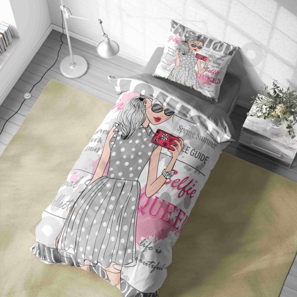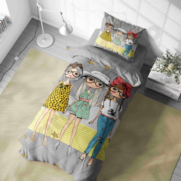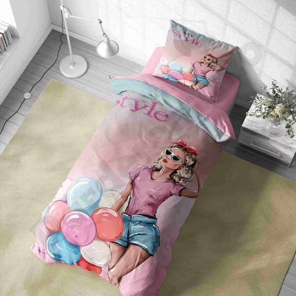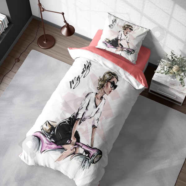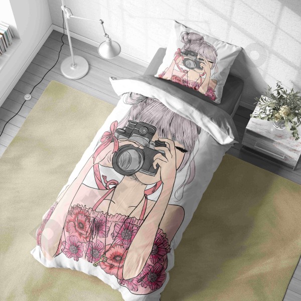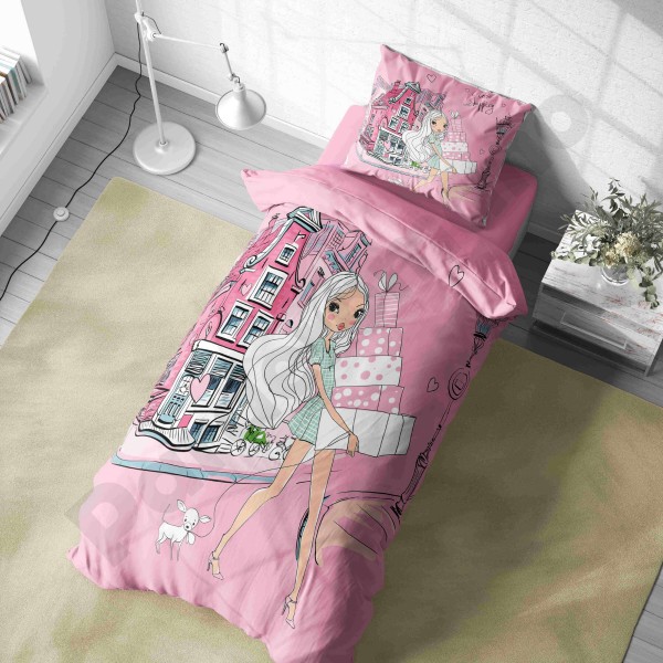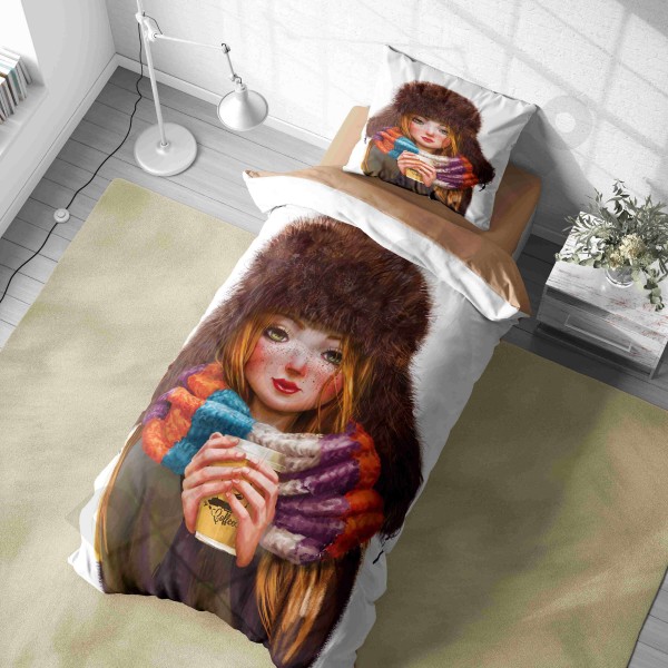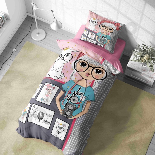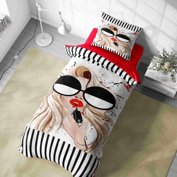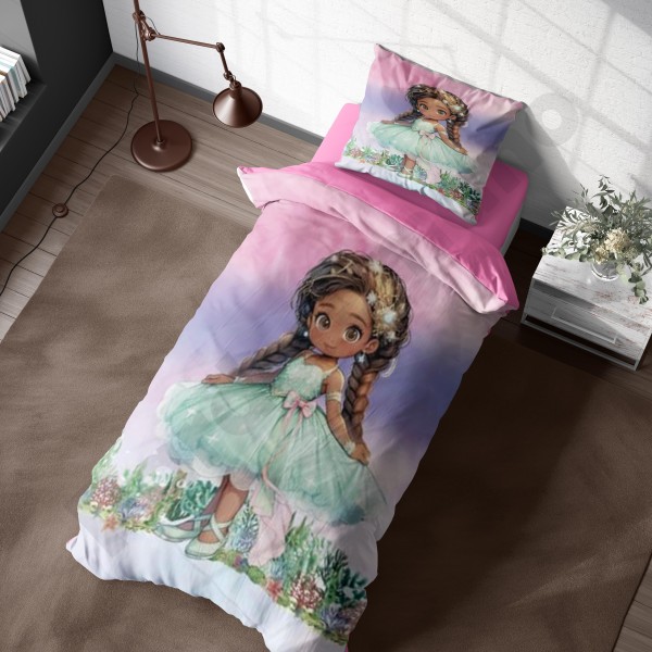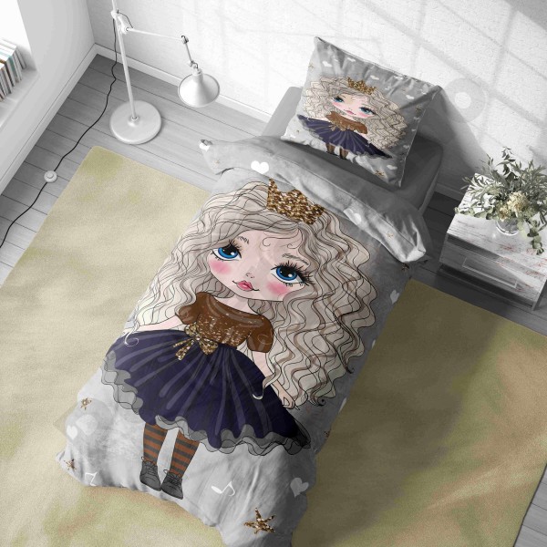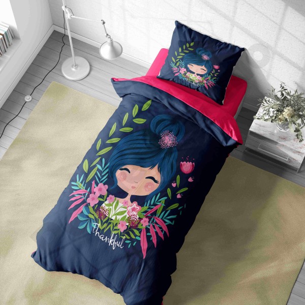 ست روتختی یکنفره طرح دختر مو فرفری