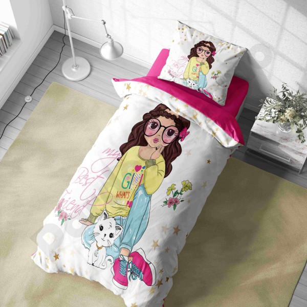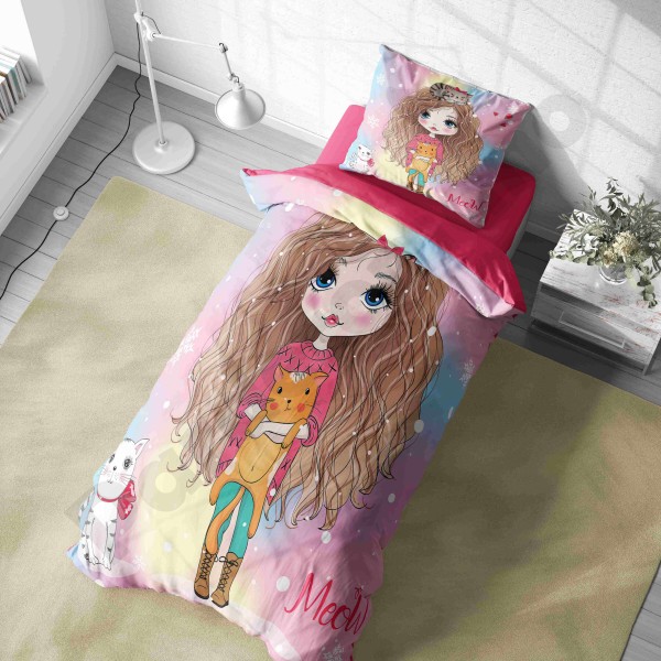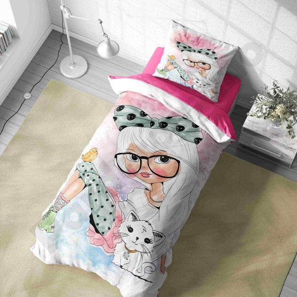 ست روتختی یکنفره طرح دختر گربه ای