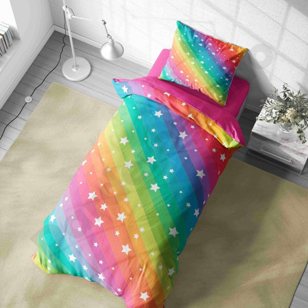ست روتختی یکنفره طرح رنگین کمان و ستاره