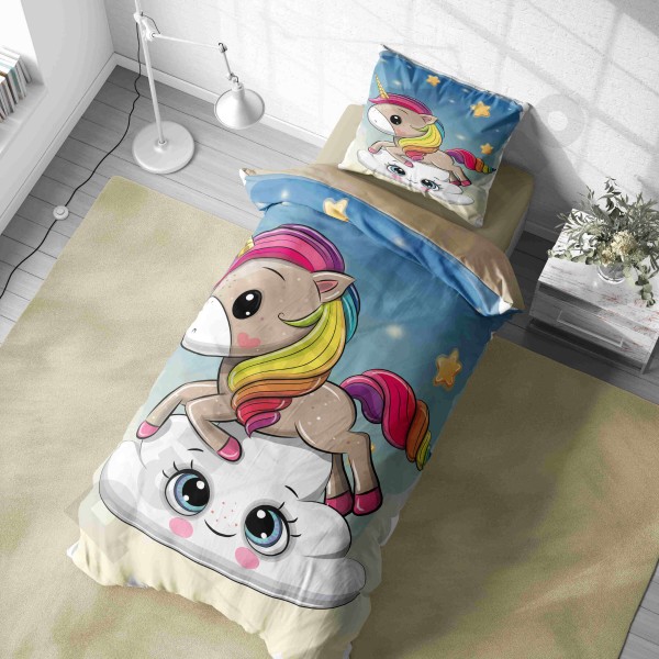 ست روتختی یکنفره طرح کودک اسب تک شاخ یونیکورن